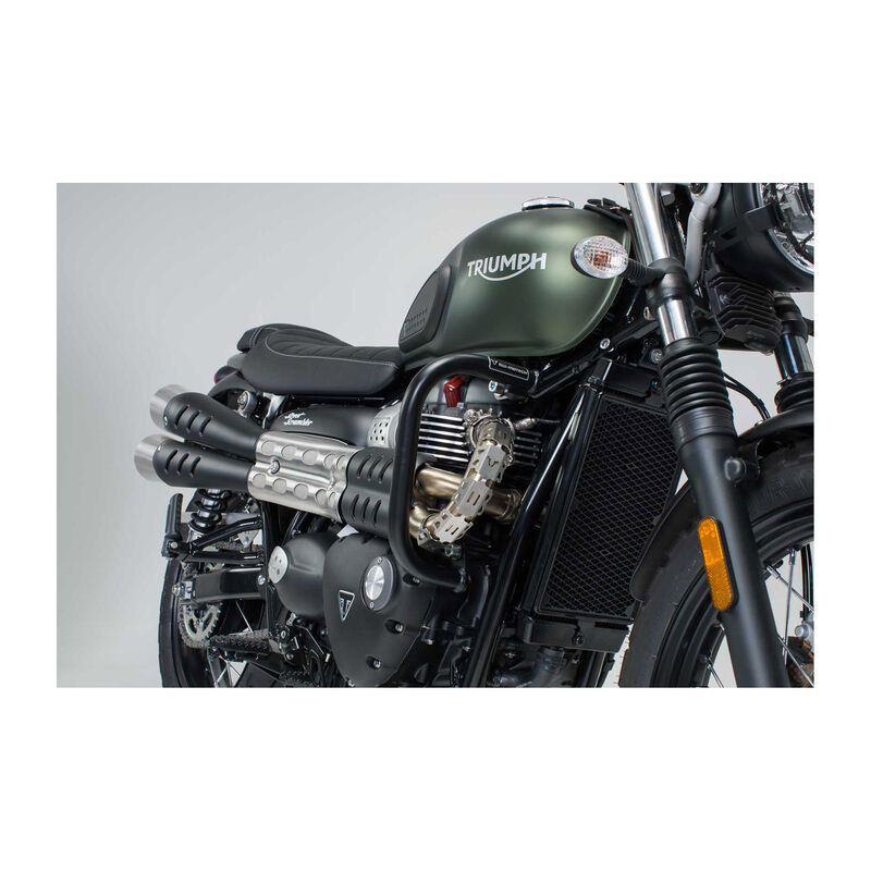 SW-MOTECH MOTORSCHUTZBÜGEL, SCHWARZ Passend zum Motorradmodell werden die Sturzbügel aus Stahlrohr mit witterungs- und korrosionsbeständiger Pulverbeschichtung angeboten. Die Oberflächenveredelung erfolgt in einer hochmodernen Anlage im SW-Motech Werk im tschechischen Brünn. Sturzbügel von SW-Motech geben das nötige Plus an Sicherheit für Tank, Verkleidung und Komponenten. Die spezifisch zum Motorradtyp gefertigten Elemente passen sich nahtlos in die Optik des Fahrzeuges ein und bieten gleichzeitig optimale Schräglagenfreiheit. Massgeschneiderte Anbauelemente ermöglichen eine belastbare und einfache Montage an original Befestigungspunkten. BACKYARD RACING DETAILS: * Konstruktion aus robustem Stahl * Witterungs- und korrosionsbeständige Pulverbeschichtung * Zuverlässiger Schutz wichtiger Bauteile * Äusserst stabile Konstruktion passend zum Erscheinungsbild des Motorrads * Modellspezifische Entwicklung garantiert präzise Passgenauigkeit und belastbare Rahmenanbindung * Optimale Schräglagenfreiheit gewährleistet * Einfache Montage durch Verschrauben an werkseitig vorhandenen Rahmen-Befestigungspunkten LIEFERUMFANG: * 2x Sturzbügel * Montagematerial * Anbauanleitung motorschutzbügel,sturzbügel,crash bar,crash bars,paramotore,pare-cylindre,adventure bügel,verkleidungsschutz,sturzschutz,motorschutz bügel,motorrad sturzbügel,Sicherheitsbügel,rahmenprotektoren,schutzbügel,stossfänger Passend auf: TRIUMPH BONNEVILLE 1200 BOBBER BONNEVILLE 1200 BOBBER BLACK BONNEVILLE 1200 BOBBER TFC BONNEVILLE 1200 SPEEDMASTER STREET SCRAMBLER 900 i