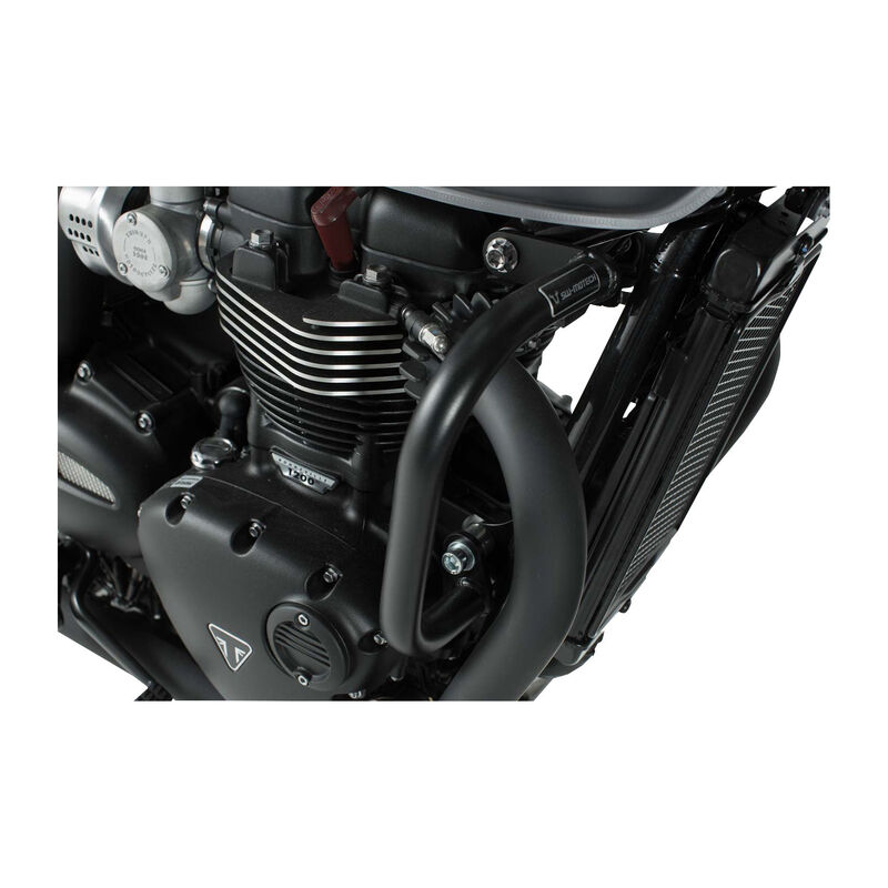 SW-MOTECH MOTORSCHUTZBÜGEL, SCHWARZ Passend zum Motorradmodell werden die Sturzbügel aus Stahlrohr mit witterungs- und korrosionsbeständiger Pulverbeschichtung angeboten. Die Oberflächenveredelung erfolgt in einer hochmodernen Anlage im SW-Motech Werk im tschechischen Brünn. Sturzbügel von SW-Motech geben das nötige Plus an Sicherheit für Tank, Verkleidung und Komponenten. Die spezifisch zum Motorradtyp gefertigten Elemente passen sich nahtlos in die Optik des Fahrzeuges ein und bieten gleichzeitig optimale Schräglagenfreiheit. Massgeschneiderte Anbauelemente ermöglichen eine belastbare und einfache Montage an original Befestigungspunkten. BACKYARD RACING DETAILS: * Konstruktion aus robustem Stahl * Witterungs- und korrosionsbeständige Pulverbeschichtung * Zuverlässiger Schutz wichtiger Bauteile * Äusserst stabile Konstruktion passend zum Erscheinungsbild des Motorrads * Modellspezifische Entwicklung garantiert präzise Passgenauigkeit und belastbare Rahmenanbindung * Optimale Schräglagenfreiheit gewährleistet * Einfache Montage durch Verschrauben an werkseitig vorhandenen Rahmen-Befestigungspunkten LIEFERUMFANG: * 2x Sturzbügel * Montagematerial * Anbauanleitung motorschutzbügel,sturzbügel,crash bar,crash bars,paramotore,pare-cylindre,adventure bügel,verkleidungsschutz,sturzschutz,motorschutz bügel,motorrad sturzbügel,Sicherheitsbügel,rahmenprotektoren,schutzbügel,stossfänger Passend auf: TRIUMPH BONNEVILLE 1200 i SPEED TWIN BONNEVILLE 1200 i T120 BUD EKINS BONNEVILLE 900 T100 i STREET TWIN 900 i
