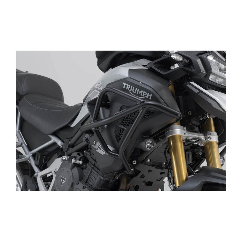 SW-MOTECH OBERER STURZBÜGEL, SCHWARZ Die oberen Sturzbügel werden aus pulverbeschichtetem Stahl konstruiert und werden als Ergänzung des Sturzbügels von SW-Motech montiert. Die exklusiv für dieses Motorrad entwickelten Elemente passen sich nahtlos in die Optik des Fahrzeuges ein und garantieren eine einfache Montage. Die oberen Sturzbügel schützen vornehmlich die Verkleidung des Motorrads und verleihen dem Motorrad einen individuellen Look. * Konstruktion aus robustem Stahl mit 22 mm Rohrdurchmesser * Witterungs- und korrosionsbeständige Pulverbeschichtung * Schützt die Verkleidung * Modellspezifische Entwicklung garantiert präzise Passgenauigkeit * Einfache Montage durch Verschrauben an original Anbaupunkten LIEFERUMFANG: * 2x Oberer Sturzbügel * Anbauanleitung * Montagematerial BACKYARD RACING DETAILS: * Material: Stahl * Oberfläche: Pulverbeschichtet * Farbe: Schwarz HINWEIS: Der untere Sturzbügel ist nicht im Lieferumfang enthalten. verkleidungsschutz,upper crash bar,verkleidungs schutzbügel,sturzbügel erweiterung,sturzbügel ergänzung,motorschutzbügel,sturzbügel,crash bar,crash bars,paramotore,pare-cylindre,adventure bügel,verkleidungsschutz,sturzschutz,motorschutz bügel,motorrad sturzbügel,Sicherheitsbügel,rahmenprotektoren,schutzbügel,stossfänger Passend auf: TRIUMPH TIGER 1200 GT / PRO / EXPL. / RALLY