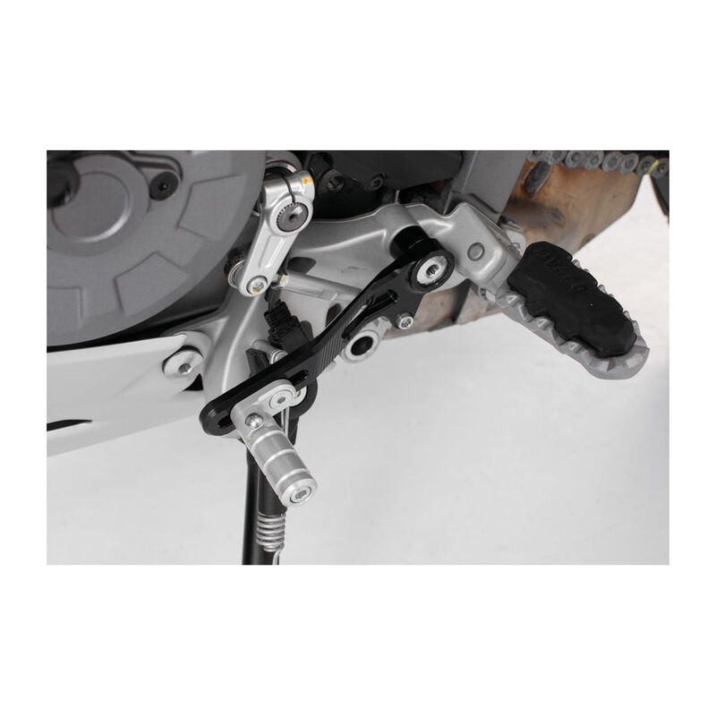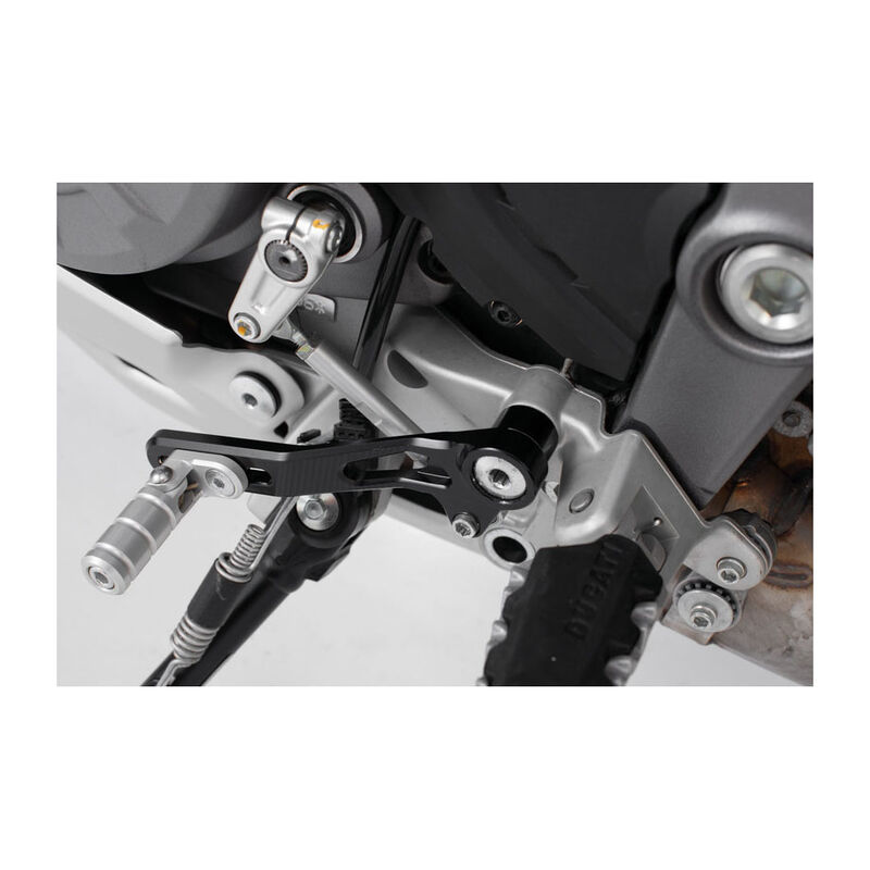 SW-MOTECH SCHALTHEBEL, SCHWARZ – SILBER Der aus hochwertiger Aluminium-Legierung gefräste Schalthebel für die Ducati 950 Multistrada lässt sich stufenlos einstellen, um die optimale Schaltposition zu finden. Schalthebel von SW-Motech verbinden ausgesuchte Materialien und innovatives Design mit perfekter Passform. Eine HART-COAT Behandlung beugt Kratzern am Hebel vor, die eingebaute Klappfeder schützt den Schalthebel bei Stürzen. * Zweiteiliger Schalthebel mit stufenlos verstellbarer Einheit * Abstand zwischen Auftritt und Schaltwelle beim originalen Schalthebel: 105 mm * Einstellbereich des Abstands zwischen Auftritt und Schaltwelle beim SW-Motech Schalthebel: 77 – 132 mm * Der Auftritt lässt sich ebenfalls um 180 Grad gedreht montieren * Bessere Ergonomie und sichere Bedienung des Schalthebels * Federmechanismus ermöglicht Einklappen und schützt vor Bruch bei Stürzen * Robust und formschön: CNC-gefrästes, HART-COAT beschichtetes Aluminium * Montage einer separat erhältlichen Schalthebel-Verlängerung zur Vergrösserung der Auftrittsfläche möglich * Keine ABE für den deutschen Strassenverkehr erforderlich LIEFERUMFANG: * 1x Schalthebel * Anbauanleitung * Montagematerial HINWEIS: Das Wegklappen des Schalthebels beim Umfallen des Motorrades ist nur gewährleistet, wenn der Schalthebel in der Standardposition nach vorne montiert ist. alu schalthebel,after market shift lever,schalthebel einstellbar,schalthebel zweiteilig,schalthebel verstellbar,schaltgriff,fusshebel,gangwahlhebel,fussschalter,ganghebel,gear pedal,shift lever,selecteur de vitesse,leva del cambio moto Passend auf: DUCATI MULTISTRADA 1260 MULTISTRADA 1260 ENDURO MULTISTRADA 1260 S MULTISTRADA 1260 S D/AIR MULTISTRADA 1260 S PIKES PEAK MULTISTRADA 950 MULTISTRADA 950 S MULTISTRADA 950 S TOURING MULTISTRADA 950 TOURING