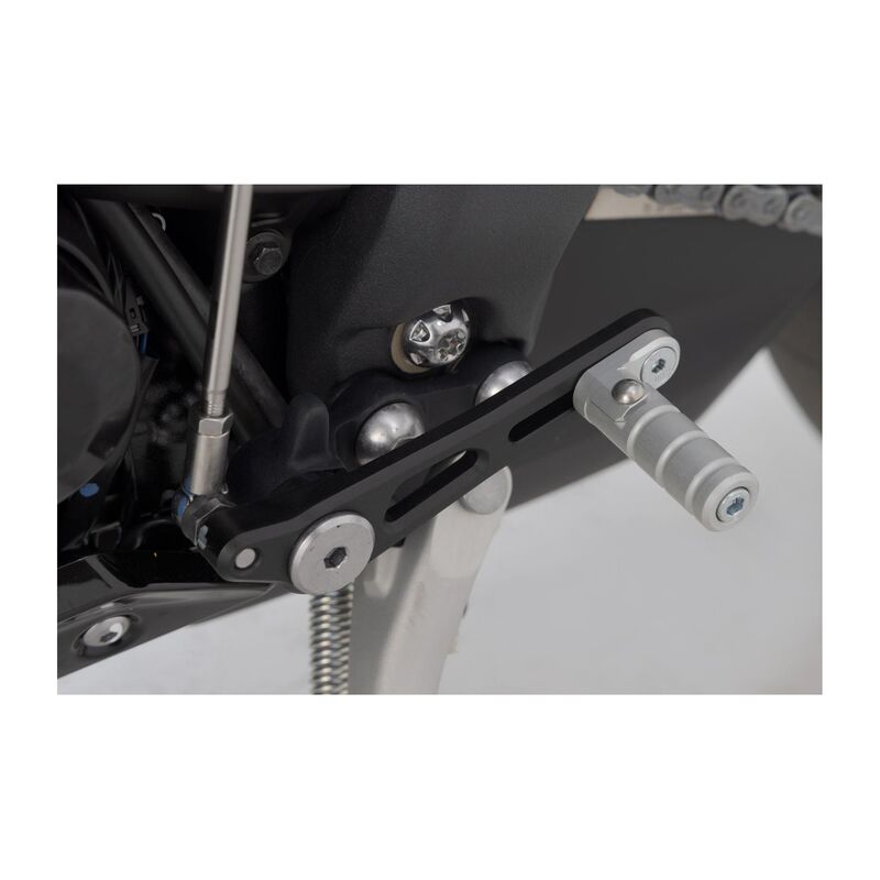 SW-MOTECH SCHALTHEBEL, SCHWARZ – SILBER Der aus hochwertiger Aluminium-Legierung gefräste Schalthebel für die Triumph Speed Triple 1200 RS lässt sich stufenlos einstellen, um die optimale Schaltposition zu finden. Schalthebel von SW-Motech verbinden ausgesuchte Materialien und innovatives Design mit perfekter Passform. Eine HART-COAT(R) Behandlung beugt Kratzern am Hebel vor, die eingebaute Klappfeder schützt den Schalthebel bei Stürzen. BACKYARD RACING DETAILS: * Zweiteiliger Schalthebel mit stufenlos verstellbarer Einheit * Abstand zwischen Auftritt und Schaltwelle beim originalen Schalthebel: 84 mm * Einstellbereich des Abstands zwischen Auftritt und Schaltwelle beim SW-Motech Schalthebel: 55-109 mm * Der Auftritt lässt sich ebenfalls um 180 Grad gedreht montieren * Bessere Ergonomie und sichere Bedienung des Schalthebels * Federmechanismus ermöglicht Einklappen und schützt vor Bruch bei Stürzen * Robust und formschön: CNC-gefrästes, HART-COAT(R) beschichtetes Aluminium * Montage einer separat erhältlichen Schalthebel-Verlängerung zur Vergrösserung der Auftrittsfläche möglich * Keine ABE für den deutschen Strassenverkehr erforderlich LIEFERUMFANG: * 1x Schalthebel * Montagematerial * Anbauanleitung HINWEIS: Das Wegklappen des Schalthebels beim Umfallen des Motorrades ist nur gewährleistet, wenn der Schalthebel in der Standardposition nach vorne montiert ist. alu schalthebel,after market shift lever,schalthebel einstellbar,schalthebel zweiteilig,schalthebel verstellbar,schaltgriff,fusshebel,gangwahlhebel,fussschalter,ganghebel,gear pedal,shift lever,selecteur de vitesse,leva del cambio moto Passend auf: TRIUMPH SPEED TRIPLE 1200 RR SPEED TRIPLE 1200 RS