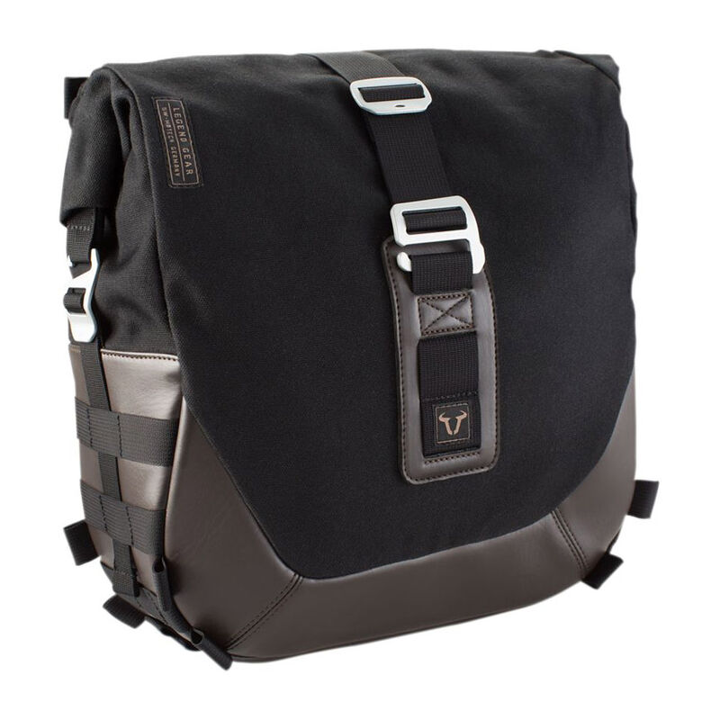 SW-MOTECH SEITENTASCHE LEGEND GEAR LC2, LINKS Die Legend Gear Seitentasche LC vereint klassische Optik und zeitgemässe Handhabung. Mit wenigen Handgriffen lässt sich die Tasche über ein Schnellverschluss-System am SLC Seitenträger anbringen und abnehmen. Robustes Napalon-Kunstleder und gewachstes Canvas-Gewebe unterstreichen das aufwendige Vintage-Design der Softgepäck-Serie. * Zum Anklicken am linken SLC Seitenträger * Modellspezifischer SLC Seitenträger aus stabilem Stahlrohr sichert zuverlässigen Halt * Schnellverschluss-Befestigung aus glasfaserverstärktem Polyamid ermöglicht sekundenschnelles Anbringen und Abnehmen der Legend Gear Seitentasche LC * Regenschutz durch Rollverschluss, wasserabweisendes Material und wasserdichte Innentasche * Zahlreiche Halteschlaufen zur individuellen Befestigung der Legend Gear LA1 und LA2 Zusatztaschen und der Legend Gear LA3 Smartphone-Tasche * Laschen zum Befestigen des Legend Gear LA4 Schultergurtes * Geringes Gewicht bei formschönem Design * Material: Robustes Napalon-Kunstleder und gewachstes Canvas-Gewebe mit wasserabweisender PU-Beschichtung. Wasserdichte Innentasche aus 210D Polyamid, zweifach PU-beschichtet LIEFERUMFANG: * 1x Legend Gear Seitentasche LC2 * 1x wasserdichte Innentasche BACKYARD RACING DETAILS: * Material: Canvas / Napalon-Kunstleder * Oberfläche: Gewachst * Farbe: Schwarz / Braun * Masse: 31.0 x 14.0 x 35.0 cm * Gesamtgewicht: Ca. 1.1 kg * Gesamtvolumen: 13.5 l