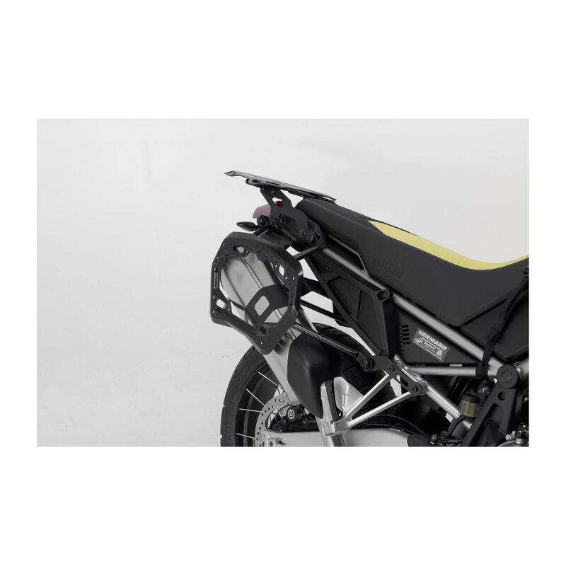 SW-MOTECH SEITENTRÄGER PRO Mit der Einführung des ersten abnehmbaren Trägers für Motorradkoffer hat SW-Motech im Zubehörmarkt ein Zeichen gesetzt. Der PRO Seitenträger ist die neue Generation. Noch robuster, noch abenteuerlustiger und immer noch abnehmbar. Offroad-Fans werden begeistert sein. Der modellspezifische PRO Seitenträger aus 2.5 mm starkem Stahl ist extrem belastbar. Der PRO Seitenträger gibt Seitenkoffern von SW-Motech, Givi/Kappa, Hepco & Becker, Krauser und Shad sowie SysBag-Taschen (SysBag 15, 30 und WP L) sicheren Halt. Passende Adapterkits sind separat erhältlich. Die zahlreichen Funktionsbohrungen des PRO Seitenträgers erlauben die Befestigung von RotopaX-Kanistern und anderem Zubehör. SW-Motech setzt weiterhin auf die beliebten Quick-Lock Schnellverschlüsse, welche im Zuge der Neuentwicklung ebenfalls überarbeitet wurden. Lösen lassen sich die Schnellverschlüsse wie gewohnt per Vierteldrehung mit einem Schlitz-Schraubendreher oder dem SW-Motech Multitool. Im Handumdrehen lässt sich der Träger komplett abnehmen und am Bike verbleiben nur unscheinbare Anbauelemente. Wer den PRO Seitenträger permanent an seinem Motorrad befestigen möchte, dem kommt die Neukonstruktion der Schnellverschlüsse entgegen. Es wird kein spezielles Befestigungskit mehr benötigt. Der PRO Seitenträger lässt sich nun mit kostengünstigeren Normteilen (M8) fest verschrauben. Ein entsprechendes Schraubenkit (M8) ist separat erhältlich. * Extrem belastbar durch optimierte Form und 2.5 mm starken Stahl * Perfekte Passform, nah ans Fahrzeug konstruiert * Komplett abnehmbar mit neu entwickelten, noch robusteren Schnellverschlüssen * Optionale Diebstahlsicherung erhältlich * Für permanente Montage lassen sich Schnellverschlüsse durch Normteile (M8) ersetzen * Zahlreiche Funktionsbohrungen, u.a. kompatibel mit RotopaX-System * Einfache Montage an original Anbaupunkten * Wirksamer Korrosionsschutz durch Pulverbeschichtung * Sicherer Halt für TRAX, AERO und SysBag Taschen (SysBag 15, 30 und WP L) mit Adapterplatte * Adapterkits zur Befestigung von Koffern von Givi/Kappa, Krauser und Shad ebenfalls erhältlich LIEFERUMFANG: * 2x PRO Seitenträger * Montagematerial * Anbauanleitung BACKYARD RACING DETAILS: * Material: Stahl * Oberfläche: Pulverbeschichtet * Farbe: Schwarz HINWEIS: Für die Montage von Seitenkoffern am PRO Seitenträger sind spezifische Adapterkits notwendig. Diese sind separat erhältlich für die SW-Motech Koffer der Serien TRAX ADV, TRAX ION und AERO ABS sowie SysBag mit Adapterplatte (SysBag 15, 30 und WP L). Auch für Koffersysteme anderer Hersteller sind Adapterkits separat erhältlich. GENEHMIGUNGSHINWEIS: Dieses Produkt muss nicht zugelassen werden. Es benötigt daher auch keine Prüfzeichen, Gutachten oder Allgemeine Betriebserlaubnis. Die Informationen in der Anbauanleitung sind zu beachten.