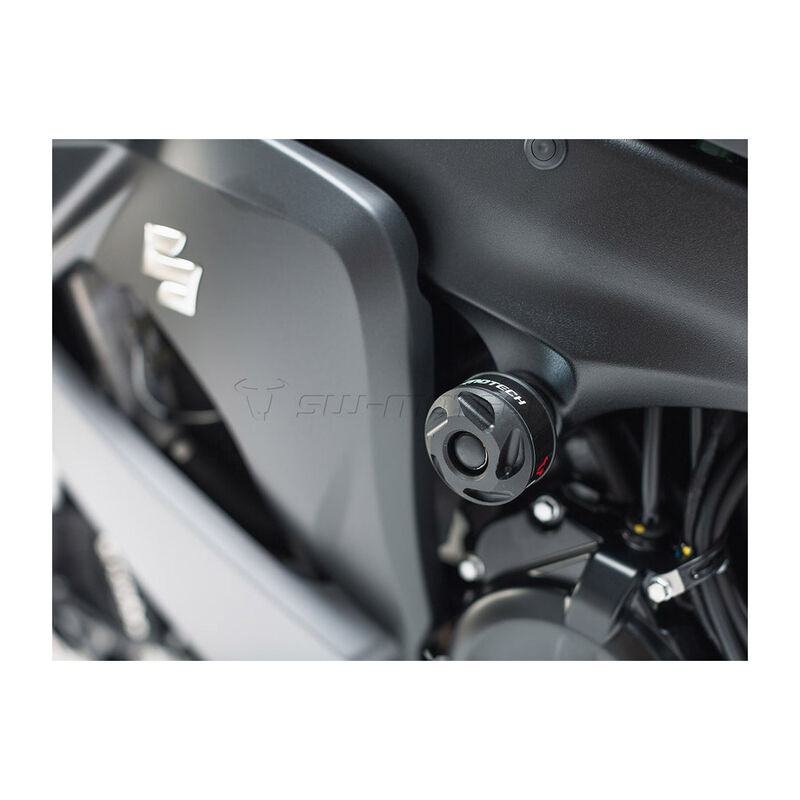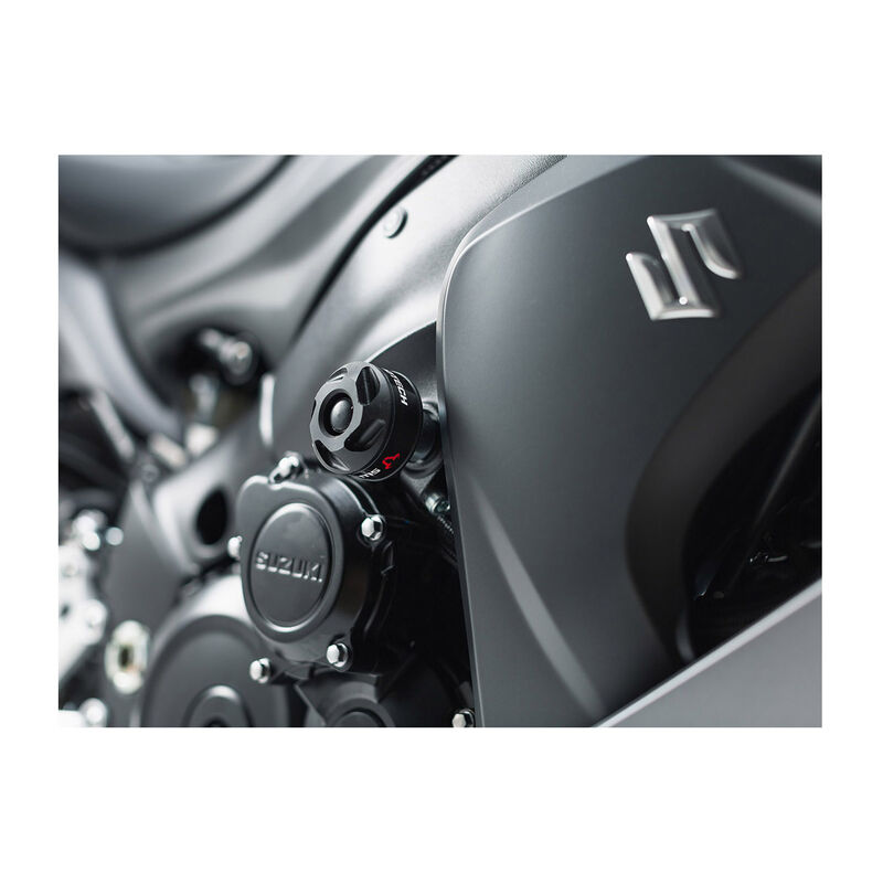 SW-MOTECH STURZPAD-KIT, SCHWARZ Zusätzlichen Schutz im Falle eines Sturzes geben Rahmen-Sturzpads. Form, Oberfläche und Material sorgen für hervorragende Gleiteigenschaften und verringern Schäden am Motorrad. Die robuste Alu-Unterkonstruktion lässt sich leicht montieren und bei Bedarf lassen sich die CNC-gefrästen Schleifpads aus abriebfestem Polyamid schnell austauschen. * Schutz von Rahmen, Motor und Verkleidung * Formschönes, bei Bedarf austauschbares Schleifpad aus abriebfestem Polyamid * Grosse Auflagefläche für bestmögliche Kraftverteilung * Optimierte Oberfläche mit guten Gleiteigenschaften * Äusserst solide, CNC-gefräste Unterkonstruktion aus Aluminium-Legierung * Einfache Montage und stabile Rahmenanbindung dank modellspezifischer Anbauelemente LIEFERUMFANG: * 2x Sturzpad für Rahmenmontage * Anbauanleitung * Montagematerial BACKYARD RACING DETAILS: * Material: PA6 Ertalon / Aluminium * Oberfläche: eloxiert * Farbe: Schwarz / Silber HINWEIS: Dieses Produkt muss nicht zugelassen werden. Es benötigt daher auch keine Prüfzeichen, Gutachten oder eine Allgemeine Betriebserlaubnis (ABE). Die Informationen in der Anbauanleitung sind zu beachten. sturzpad kit,rahmenschutz,rahmenschützer,sturzpads komplett,rahmenprotektoren,sturzschutz,rahmenschoner,rahmenschutz,rahmenschützer,frame protectors,protezione telaio,acerbis rahmenschützer,abdeckung für rahmen,rahmen protektor Passend auf: SUZUKI GSX-S 1000 GSX-S 1000 F GSX-S 1000 S KATANA
