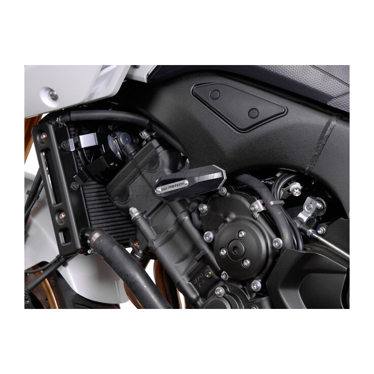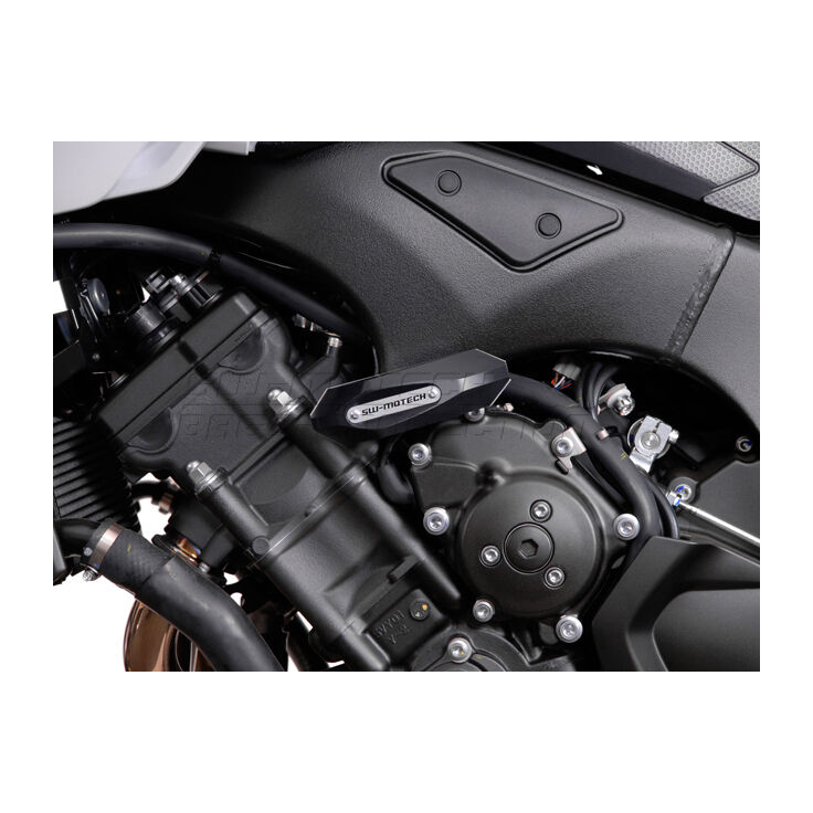 SW-MOTECH STURZPAD-KIT, SCHWARZ Zusätzlichen Schutz im Falle eines Sturzes geben Rahmen-Sturzpads. Form, Oberfläche und Material sorgen für hervorragende Gleiteigenschaften und verringern Schäden am Motorrad. Die robuste Alu-Unterkonstruktion lässt sich leicht montieren und bei Bedarf lassen sich die CNC-gefrästen Schleifpads aus abriebfestem Polyamid schnell austauschen. * Schutz von Rahmen, Motor und Verkleidung * Formschönes, bei Bedarf austauschbares Schleifpad aus abriebfestem Polyamid * Grosse Auflagefläche für bestmögliche Kraftverteilung * Optimierte Oberfläche mit guten Gleiteigenschaften * Äusserst solide, CNC-gefräste Unterkonstruktion aus Aluminium-Legierung * Einfache Montage und stabile Rahmenanbindung dank modellspezifischer Anbauelemente LIEFERUMFANG: * 2x Sturzpad für Rahmenmontage * Anbauanleitung * Montagematerial BACKYARD RACING DETAILS: * Material: PA6 Ertalon / Aluminium * Oberfläche: eloxiert * Farbe: Schwarz / Silber HINWEIS: Dieses Produkt muss nicht zugelassen werden. Es benötigt daher auch keine Prüfzeichen, Gutachten oder eine Allgemeine Betriebserlaubnis (ABE). Die Informationen in der Anbauanleitung sind zu beachten. sturzpad kit,rahmenschutz,rahmenschützer,sturzpads komplett,rahmenprotektoren,sturzschutz,rahmenschoner,rahmenschutz,rahmenschützer,frame protectors,protezione telaio,acerbis rahmenschützer,abdeckung für rahmen,rahmen protektor Passend auf: YAMAHA FZ8N FZ8S