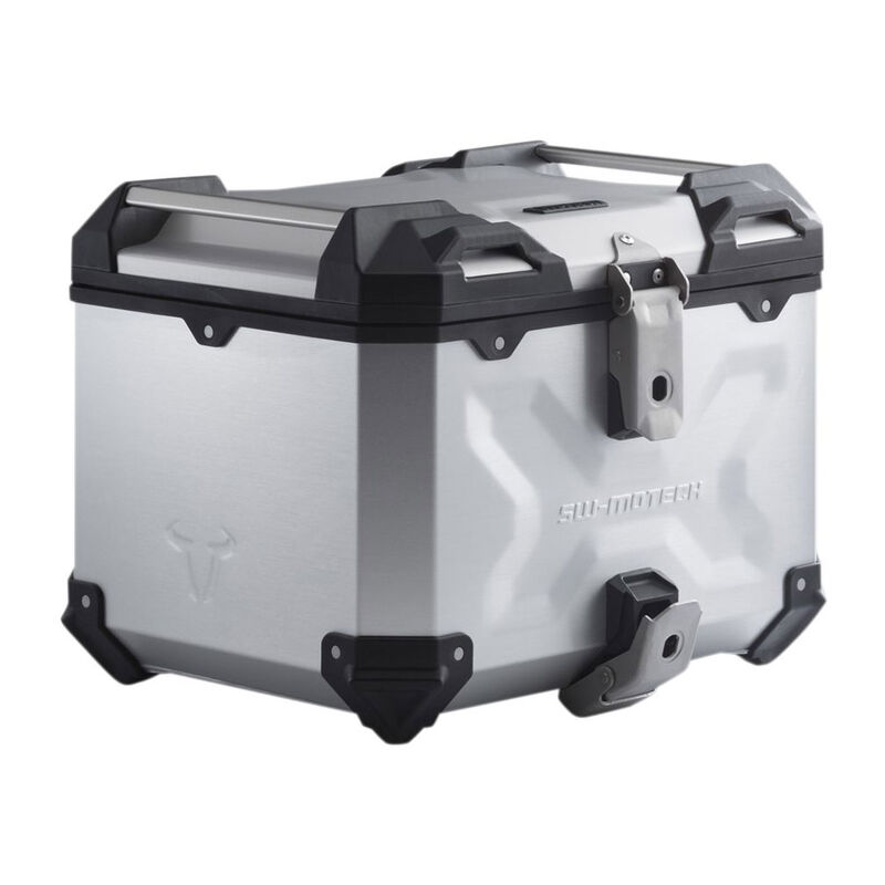 SW-MOTECH TOPCASE TRAX ADV, SILBER Ein Motorradkoffer ohne Kompromisse. Bei der Entwicklung des TRAX ADV standen Stabilität und Dichtigkeit gegenüber Staub und Wasser genauso im Fokus wie einfaches Handling. Egal ob Off-Road-Abenteuer, Fernweh-Tour oder Kurzstrecke, die Premium-Alukoffer mit einer Wandstärke von 1.5 Millimetern überzeugen bei jeder Herausforderung. Die TRAX ADV Alukoffer sind in silber oder schwarz, als Seitenkoffer in zwei Grössen und als Topcase erhältlich. * Robustes und wasserdichtes Topcase aus Aluminium * Zusätzlicher Schutz durch Ecken aus glasfaserverstärktem Kunststoff * Hohe Stabilität durch Designprägungen und geschweisste Kanten * Robotergestütztes Schweissen und Stanznieten verhindern Eindringen von Feuchtigkeit * Schutz vor Oxidation und Abrieb durch Pulverbeschichtung (schwarze Ausführung) oder Eloxal (silberne Ausführung) * Leicht zu reinigende Oberfläche * Deckel mit Schnellverschluss und Öffnungsbegrenzer * Scharniere aus Edelstahl, Tragegriffe aus eloxiertem Aluminium * 4 grosse, in das Deckeldesign integrierte Verzurrpunkte * Austauschbare Deckeldichtung * Schloss-Sätze mit wahlweise 2, 4 oder 6 gleichschliessenden Schlössern sind optional erhältlich und nicht im Lieferumfang enthalten * Volumen 38 l * Masse ca. 41x 34x 33 cm * Gewicht ca. 4.8 kg * Material Aluminium (Wandstärke 1.5 mm) LIEFERUMFANG: * 1x TRAX ADV Topcase * 2x Öffnungsbegrenzer * 1x Aufbewahrungstasche * Anbauanleitung BACKYARD RACING DETAILS: * Material: Aluminium * Materialstärke: 1.5 mm * Oberfläche: Eloxiert * Farbe: Silber * Masse: 41.0 x 34.0 x 33.0 cm * Gesamtgewicht: Ca. 4.8 kg * Gesamtvolumen: 38.0 l HINWEIS: Für die Montage sind folgende Teile zwingend erforderlich: Gepäckträger, Adapterkit, TRAX Schloss-Satz. Optional auch als TRAX ADV Topcase-System mit ADVENTURE-RACK Gepäckträger, Adaptern und Schloss-Satz erhältlich.