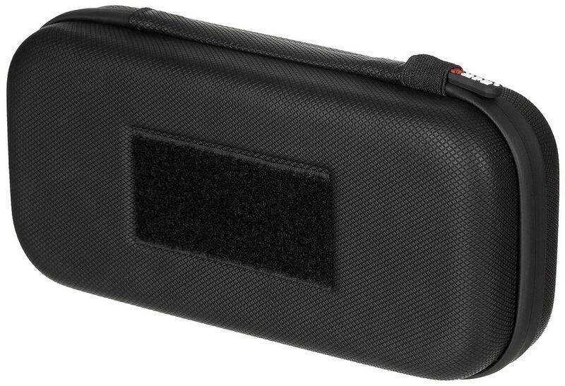 Hartschale aus langlebigem EVA Material spritzwassergeschützt, staubdicht, robust komplett aufklappbar, mit Reissverschluss innen mit elastischem Netzfach und zusätzlichem Organizer mit 6 elastischen Schlaufen für SD-Karten, USB-Sticks o.ä., gegenüberliegend mit 2 elastischen Bändern zur Fixierung von Geräten, Zubehör etc. weiches Innenmaterial zum Schutz vor Kratzern aussen mit Klettflauschpatch (ca. 10 x 5 cm) hinten mit 2 Klettschlaufen (ca. 12 cm) Masse: aussen: ca. 26 x 12 x 6,5 cm (L x B x T) innen: ca. 25 x 11 x 2,5 cm (L x B x T) Gewicht: ca. 200 g Material: Schale: EVA mit PU-Beschichtung Futter: Samt