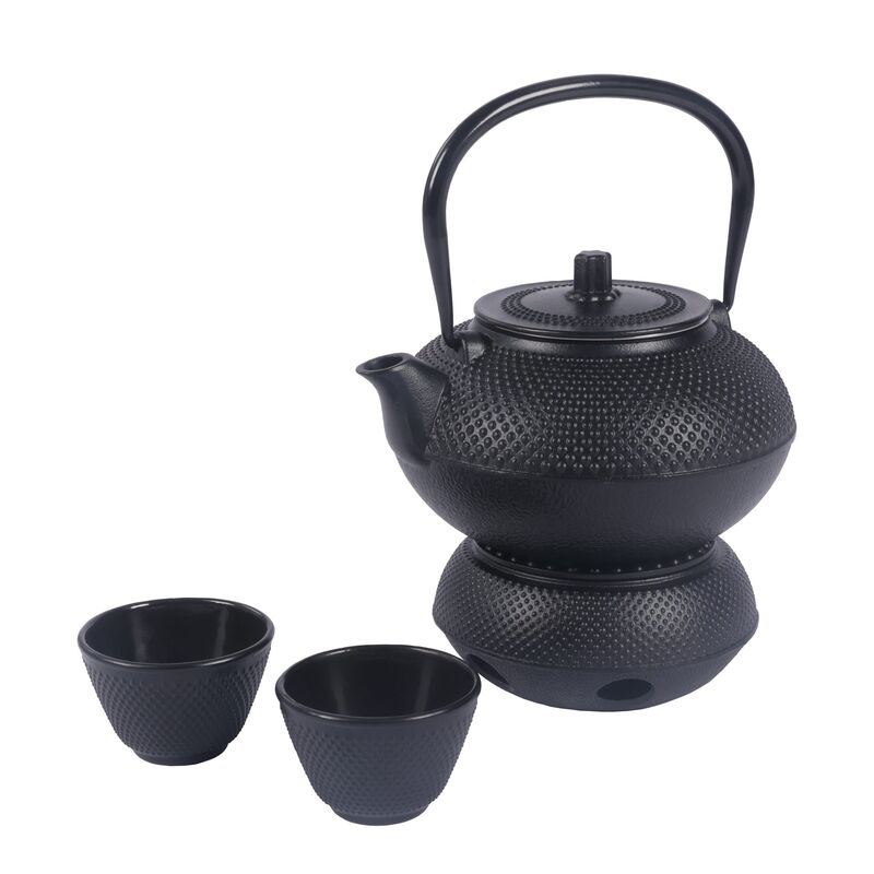 - Eine Teekanne und zwei Teetassen aus Gusseisen in schönem Design