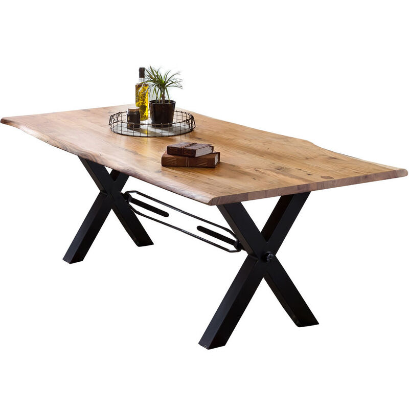 Tisch – Tisch Skyler – Akazie – B 180 T 90 H 76 cm – Plattenstärke 36 mm – mit Baumkante wie gewachsen und X-Gestell