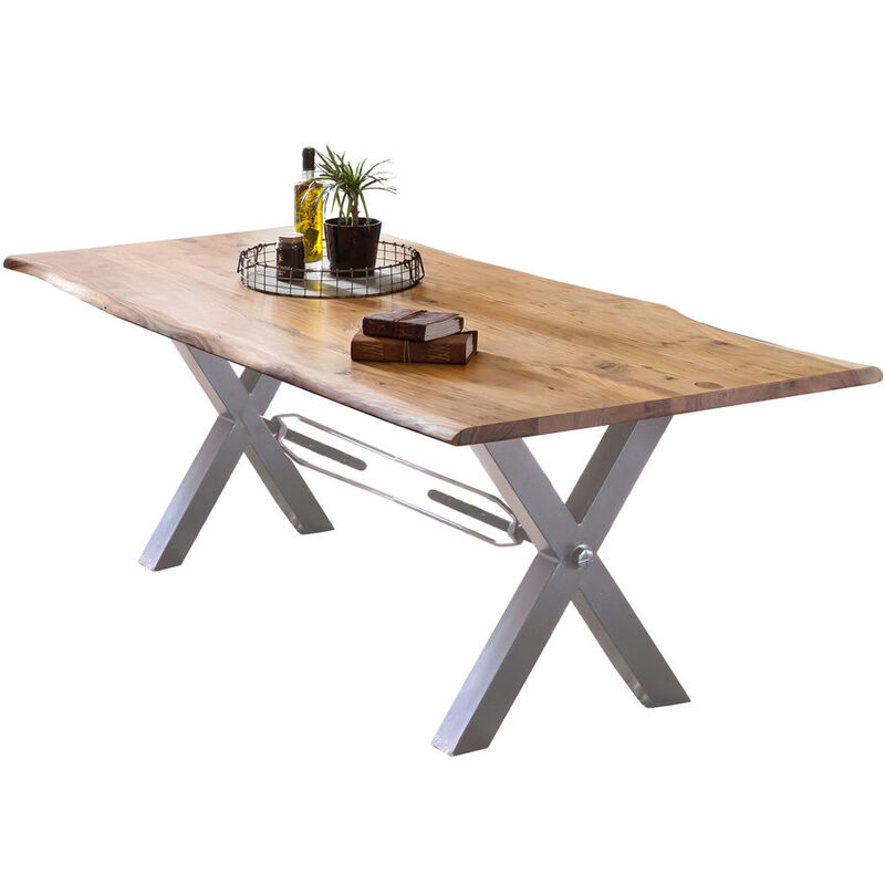 Tisch – Tisch Skyler – Akazie – B 200 T 100 H 78 cm – Plattenstärke 36 mm – mit Baumkante wie gewachsen und X-Gestell