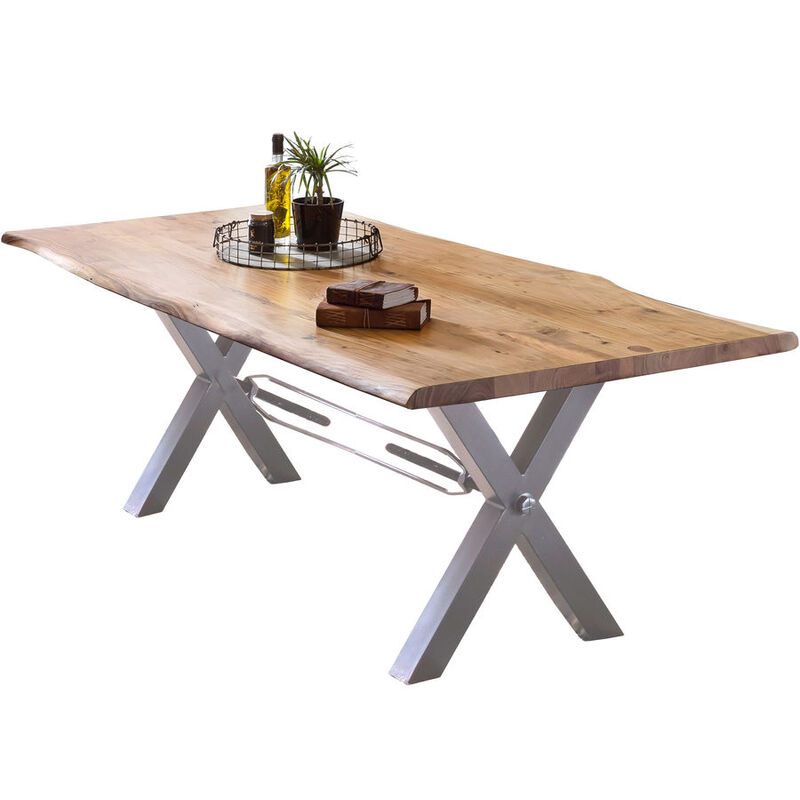 Tisch – Tisch Skyler – Akazie – B 180 T 100 H 78 cm – Plattenstärke 56 mm – mit Baumkante wie gewachsen und X-Gestell