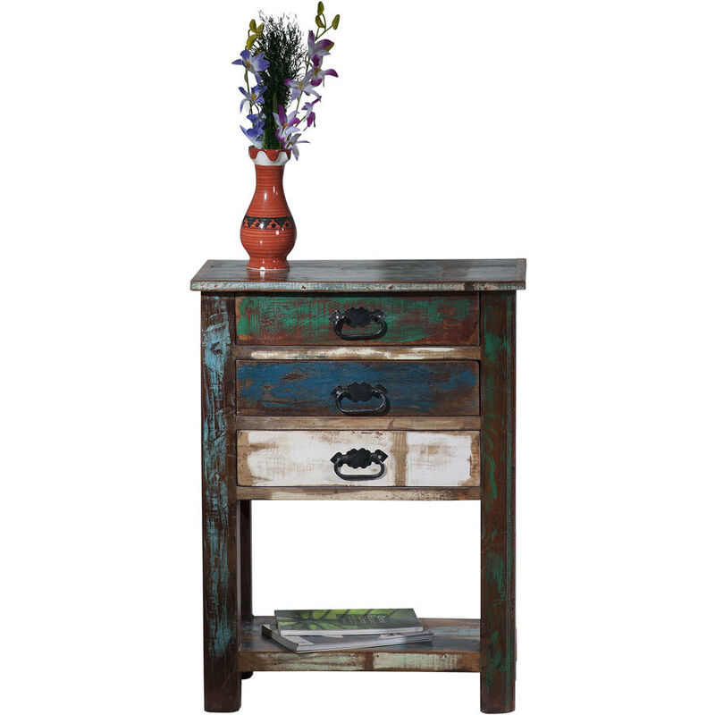 Tisch – Tisch South – Holz – B 60 T 32 H 79 cm – Telefontisch aus recyceltem Altholz (lackiert) mit starken Gebrauchsspuren, drei Schubladen, einem Ablageboden und einer Belastbarkeit von 60 kg.