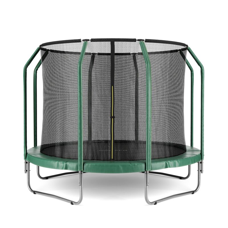 Holen Sie sich mit diesem Trampolin einen unvergleichlichen Sprungspass direkt zu Ihnen nach Hause! Dem Vergnügen sind keine Grenzen gesetzt. Denn das Netz und die gepolsterten Pfosten sorgen für Sicherheit, während die hochwertige Sprungmatte und Stahlfedern Sie in die Luft schleudern und sanft wieder auffangen. Dank einem robusten Metallrahmen und einer sicheren Konstruktion bleibt das Trampolin beim Herumturnen immer stabil. Die UV-beständige Polsterung und die Abdeckplane machen es ideal für den Aussenbereich. Toben Sie sich aus oder lehnen Sie sich entspannt zurück, während Ihre Kinder den Spass ihres Lebens haben!