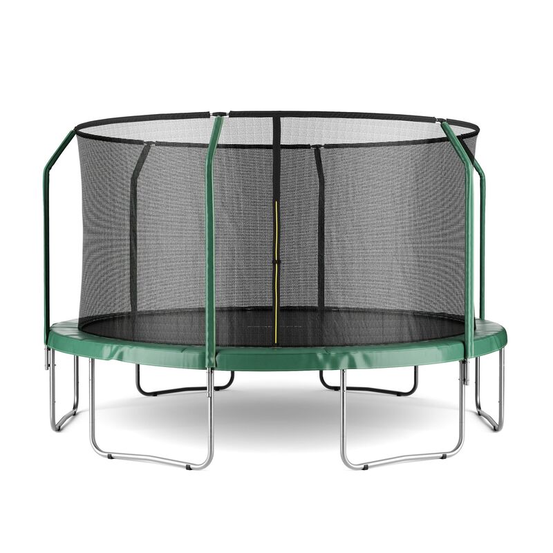 Dieses geräumige Trampolin bringt Sprungspass für die ganze Familie direkt zu Ihnen nach Hause. Das Netz und die gepolsterten Pfosten sorgen für Sicherheit, während die hochwertige Sprungmatte und Stahlfedern Sie in die Luft schleudern und sanft wieder auffangen. Dank einem robusten Metallrahmen und einer sicheren Konstruktion bleibt das Trampolin beim Herumturnen immer stabil. Die UV-beständige Polsterung und die wasserfeste Sprungmatte machen es ideal für den Aussenbereich. Toben Sie sich mit Ihren Kindern aus oder schauen Sie ihnen dabei zu, wie sie gar nicht mehr vom Trampolin wollen!