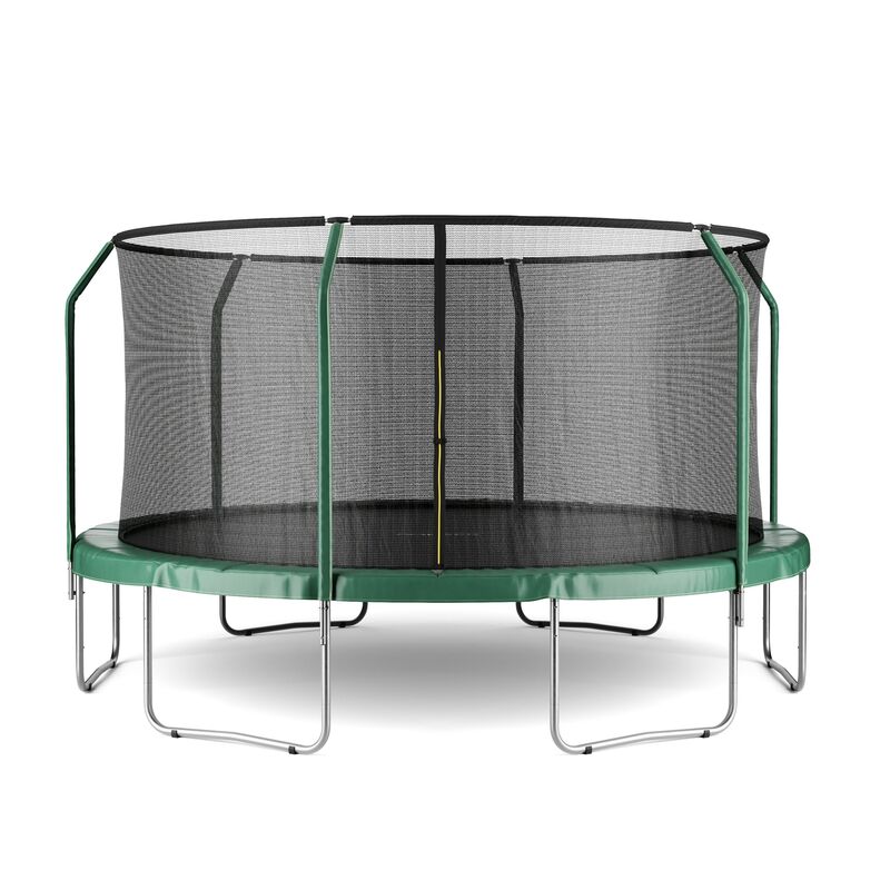 Dieses geräumige Trampolin bringt Sprungspass für die ganze Familie direkt zu Ihnen nach Hause. Das Netz und die gepolsterten Pfosten sorgen für Sicherheit, während die hochwertige Sprungmatte und Stahlfedern Sie in die Luft schleudern und sanft wieder auffangen. Dank einem robusten Metallrahmen und einer sicheren Konstruktion bleibt das Trampolin beim Herumturnen immer stabil. Die UV-beständige Polsterung und die wasserfeste Sprungmatte machen es ideal für den Aussenbereich. Toben Sie sich mit Ihren Kindern aus oder schauen Sie ihnen dabei zu, wie sie gar nicht mehr vom Trampolin wollen!