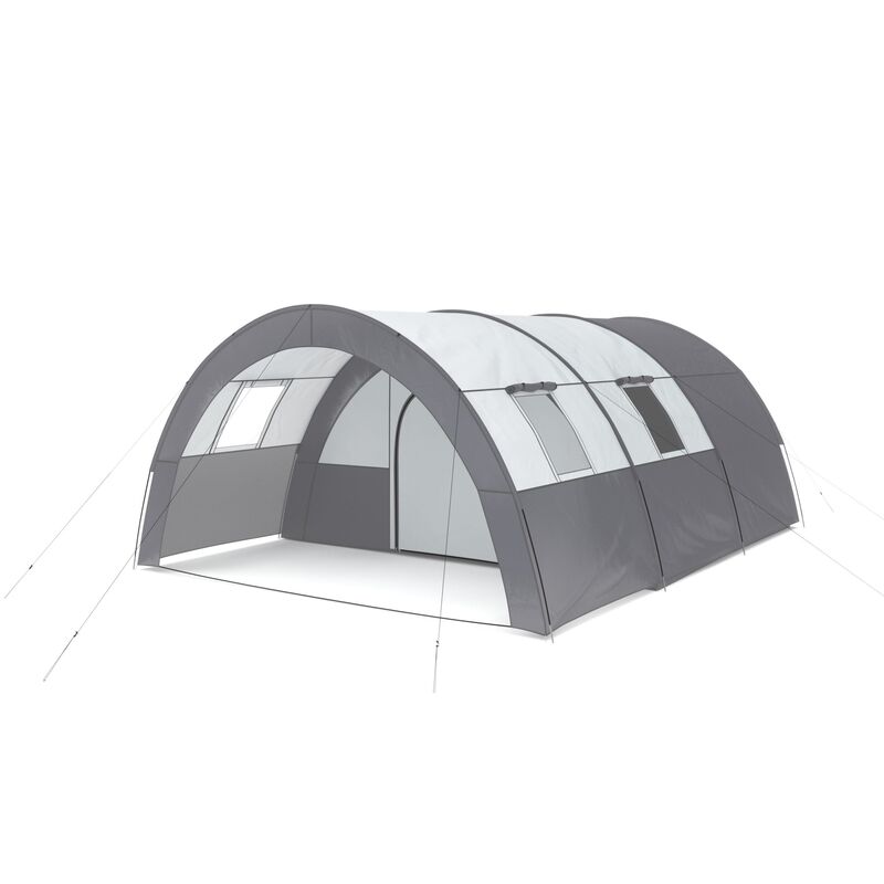 Dieses clevere Zelt ist ein unverzichtbarer Reisebegleiter für die Familienferien oder den Wochenendtrip mit Freunden. Das überdachte Vorzelt bietet viel Platz zum gemütlichen Entspannen im Schatten oder zum Verstauen der Campingausrüstung. Das grosse Zelt verfügt über vier verschliessbare Fenster mit Mückennetzen. Das Familienzelt lässt sich schnell und einfach aufbauen und kann in der dazugehörenden Tasche einfach mitgenommen werden. Mache deine Ferien zu einem unvergesslichen Erlebnis mit diesem grauen Tunnelzelt für 4 bis 6 Personen!