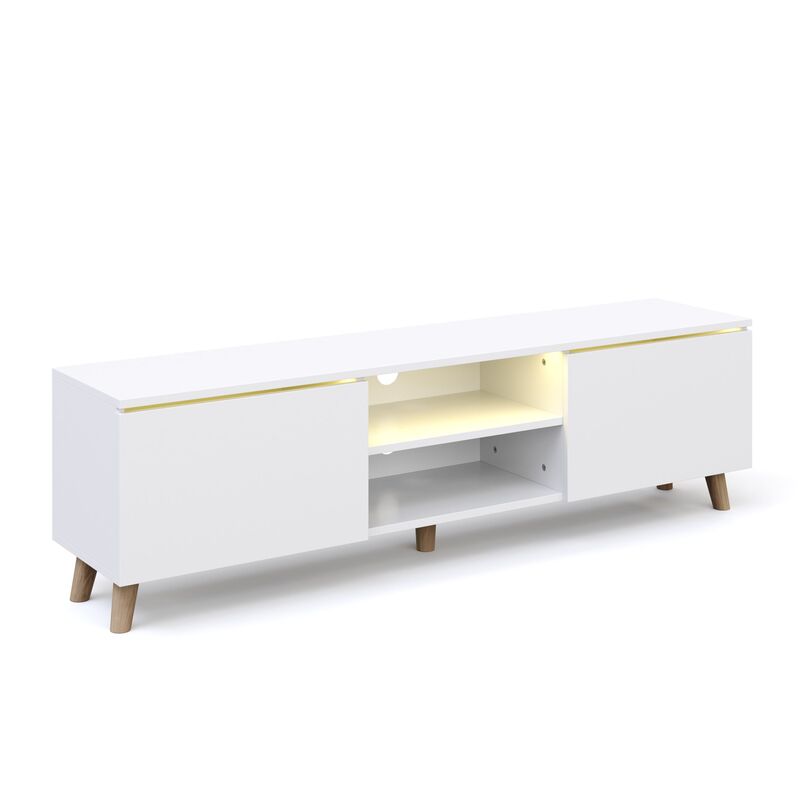 Dieses Fernsehmöbel wird dich mit seinem modischen Design und der freundlichen LED-Beleuchtung mit 16 verschiedenen Lichtfarben im Nu überzeugen und sich reibungslos in dein Interieur einfügen. Dieses Lowboard kommt aber nicht nur als optischer Blickfang daher, sondern überzeugt auch durch seine hohe Funktionalität. Die grosse Ablagefläche und das Regal- sowie Schranksystem bieten viel Stauraum für Fernbedienungen und weiteres Zubehör. Bringe mit diesem praktischen Lowboard Eleganz sowie ein stimmungsvolles Ambiente in dein Wohnzimmer!