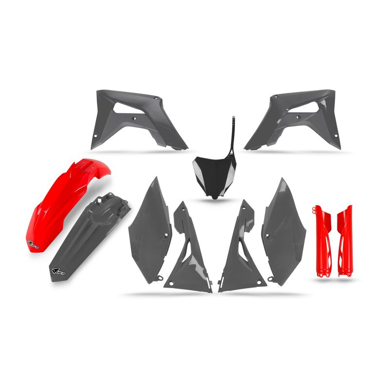 UFO PLASTIK-KIT, GRAU – ROT * Komplettes UFO-Karosserie-Kit * Ersetzt alle Kunststoffteile auf einmal * OEM passt zu Originalfarbe des Motorrads, ganz in Schwarz und ganz in Weiss ebenfalls erhältlich * Kit umfasst vorderen und hinteren Kotflügel, Kühlerabdeckung, Seitenverkleidungen und vordere Nummerntafel (ausser Husqvarna) * Einfach festschrauben * Made in Italy Bitte immer prüfen, ob passend für dein Fahrzeug. Auf -PASSEND AUF- klicken, oder dein Fahrzeug oben auswählen. PASSENDE KATEGORIEN ZU DEINEM PRODUKT FINDEST DU HIER! [cat+]11901-1[cat-][cat+]11402-1[cat-][cat+]11403-1[cat-] [cat+]11706-1[cat-][cat+]11908-1[cat-][cat+]11804-1[cat-] Plastics,Plastic kit,plastikit,plastik kit,plastikteile,plastikset,verkleidung, plastik-satz,verschalung,ersatzplastik,kit plastiche replica,kit plastique replica,motocross verkleidung,motocross verschalung,motorrad verkleidung,motorrad verschalung,UFO-1403-3514,UFO Plastik-Kit, grau – rot,Plastik-Kit,UFO Plastikkit, grau – rot,UFO-1403-3514,HOKIT126222,14033514,plastikteile,plastikset,verkleidung, plastik-satz,verschalung,ersatzplastik,kit plastiche replica,kit plastique replica,motocross verkleidung,motocross verschalung,motorrad verkleidung,motorrad verschalung,BY_OFRVRKPLSTK Passend auf: HONDA CRF250R CRF450R