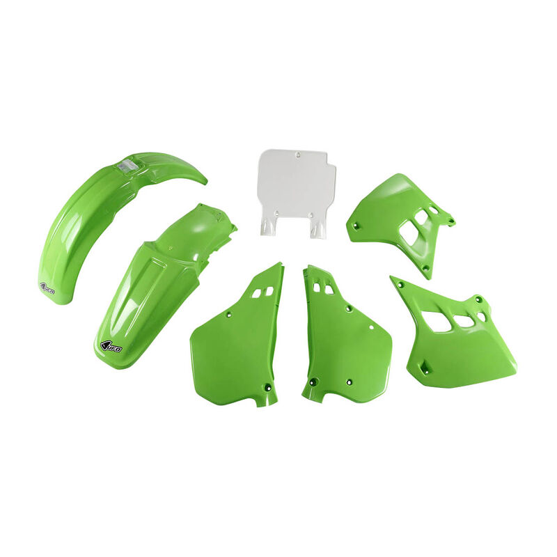 UFO PLASTIK-KIT, ORIGINALFARBEN Lassen deine Maschine wieder in neuem Glanz erscheinen. Mit dem UFO Plastikkit verpasst Du der Optik deines Bikes mit wenig Aufwand ein neues Aussehen. Folgende Teile sind im Kit enthalten: * Kotflügel vorne * Kotflügel hinten * Seitenteile * Kühlerspoiler * Nummerntafel vorne UFO hat eine über 30jährige Tradition im Rennsport und in der Herstellung von Plastikteilen * UFO produziert hochqualitative Plastikteile nach ISO-9001 * Die Teile sind alle sehr passgenau und lassen sich somit leicht austauschen und montieren * Wir bieten euch fast das komplette UFO Sortiment an, für eine rundum Erneuerung. Empfohlen z. B. vor der Montage eines Dekorkits! Bitte immer prüfen, ob passend für dein Fahrzeug. Auf -PASSEND AUF- klicken, oder dein Fahrzeug oben auswählen. PASSENDE KATEGORIEN ZU DEINEM PRODUKT FINDEST DU HIER! [cat+]11901-1[cat-][cat+]11402-1[cat-][cat+]11403-1[cat-] [cat+]11706-1[cat-][cat+]11908-1[cat-][cat+]11804-1[cat-] Plastics,Plastic kit,plastikit,plastik kit,plastikteile, plastikset, verkleidung, plastik-satz, verschalung, ersatzplastik, komplettsatz,BY_OFRVRKPLSTK,UF-1403-2450,UFO Plastik-Kit, originalfarben,Plastik-Kit,UFO Plastikkit, für Kawasaki KX250 90-91, original Farben 1990,1403-2450,KAKIT188999,14032450,plastikteile,plastikset,verkleidung, plastik-satz,verschalung,ersatzplastik,kit plastiche replica,kit plastique replica,motocross verkleidung,motocross verschalung,motorrad verkleidung,motorrad verschalung,BY_OFRVRKPLSTK Passend auf: KAWASAKI KX250