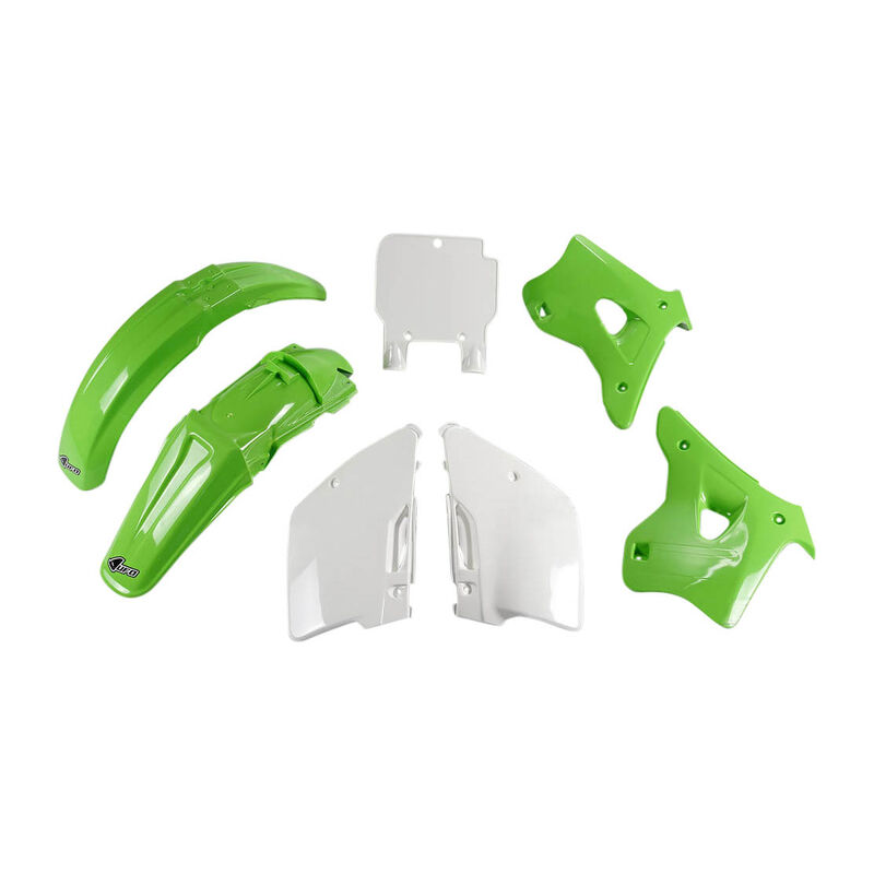 UFO PLASTIK-KIT, ORIGINALFARBEN Lassen deine Maschine wieder in neuem Glanz erscheinen. Mit dem UFO Plastikkit verpasst Du der Optik deines Bikes mit wenig Aufwand ein neues Aussehen. Folgende Teile sind im Kit enthalten: * Kotflügel vorne * Kotflügel hinten * Seitenteile * Kühlerspoiler * Nummerntafel vorne UFO hat eine über 30jährige Tradition im Rennsport und in der Herstellung von Plastikteilen * UFO produziert hochqualitative Plastikteile nach ISO-9001 * Die Teile sind alle sehr passgenau und lassen sich somit leicht austauschen und montieren * Wir bieten euch fast das komplette UFO Sortiment an, für eine rundum Erneuerung. Empfohlen z. B. vor der Montage eines Dekorkits! Bitte immer prüfen, ob passend für dein Fahrzeug. Auf -PASSEND AUF- klicken, oder dein Fahrzeug oben auswählen. PASSENDE KATEGORIEN ZU DEINEM PRODUKT FINDEST DU HIER! [cat+]11901-1[cat-][cat+]11402-1[cat-][cat+]11403-1[cat-] [cat+]11706-1[cat-][cat+]11908-1[cat-][cat+]11804-1[cat-] Plastics,Plastic kit,plastikit,plastik kit,plastikteile, plastikset, verkleidung, plastik-satz, verschalung, ersatzplastik, komplettsatz,BY_OFRVRKPLSTK,UF-1403-2453,UFO Plastik-Kit, originalfarben,Plastik-Kit,UFO Plastikkit, für Kawasaki KX125/250 94-95, original Farben,1403-2453,KAKIT193999,14032453,plastikteile,plastikset,verkleidung, plastik-satz,verschalung,ersatzplastik,kit plastiche replica,kit plastique replica,motocross verkleidung,motocross verschalung,motorrad verkleidung,motorrad verschalung,BY_OFRVRKPLSTK Passend auf: KAWASAKI KX125 KX250