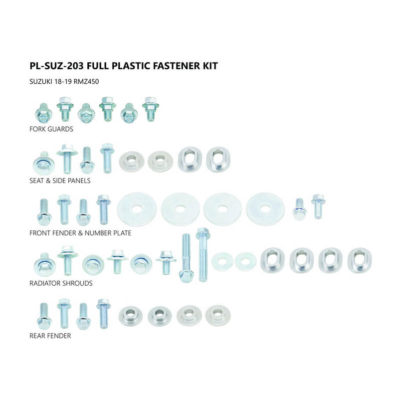 UFO SCHRAUBENKIT FÜR PLASTIKTEILE Den Lieferumfang des Kits könnt ihr auf dem Bild oben ersehen. Bitte immer prüfen, ob passend für euer Motorrad. Auf PASSEND AUF klicken, oder Motorrad oben auswählen. Weitere Artikel die sie interessieren könnten finden sie hier: [cat+]11901-1[cat-][cat+]11906-1[cat-][cat+]11403-1[cat-] [cat+]11904-1[cat-][cat+]11908-1[cat-][cat+]30105-1[cat-] schraube, schraubensatz, schruube, vis, screw, bolt, ecrou, originalschraube, ersatzschraube, plastikschrauben, verkleidungsschrauben, verschalungsschrauben, schrauben für plastikteile, viti per parti di rivestimento, kit vis pour plastiques,BY_KJUHDWAKOEW Passend auf: SUZUKI RM-Z250 RM-Z450