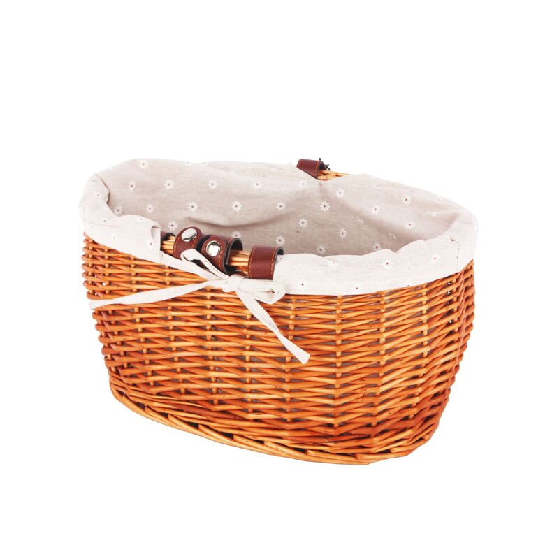 - Der Weidenkorb kann mittels Riemen einfach an den Lenker geschnallt werden