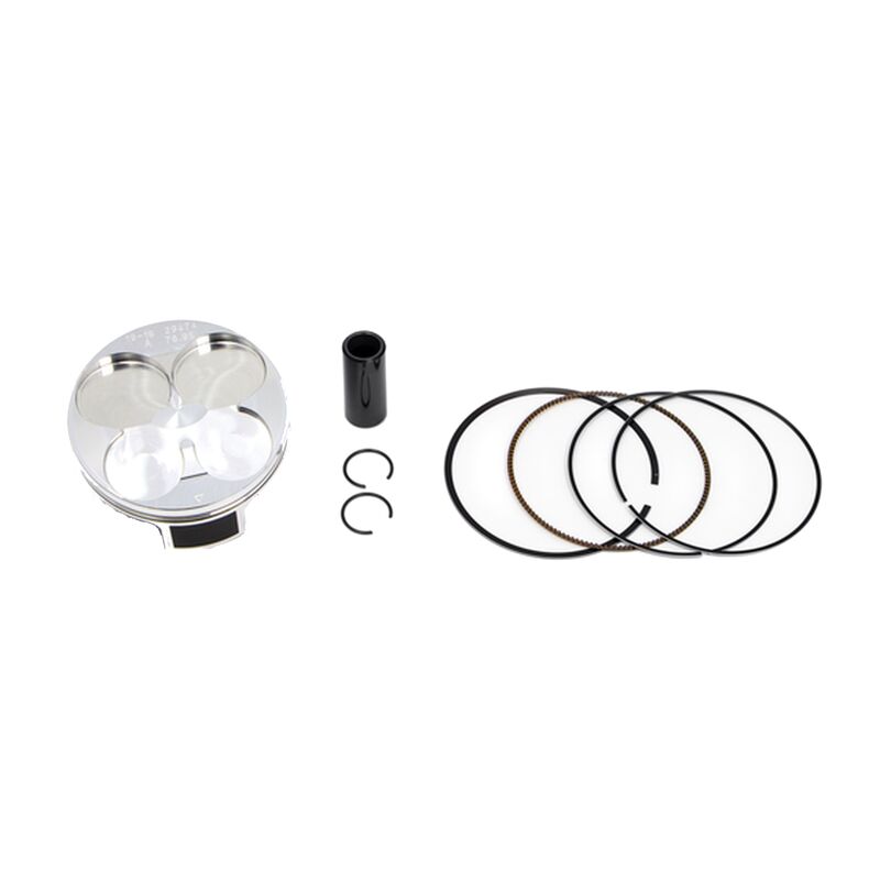 VERTEX KOLBEN KIT, TYPB HC Der italienische Hersteller VERTEX fertigt Kolben für gängige 2T und 4T Motoren, diese werden nach europäischen Qualitätsstandards gefertigt. Die Kolben werden bei einigen Marken auch als Erstausrüster Kolben verwendet. MIT DEM HC HIGH COMPRESSION KIT LIEFERT VERTEX EINEN SEHR HOCHWERTIGEN SCHMIEDEKOLBEN ENTWICKELT MIT VERTEX KNOW-HOW, RACE FORM UND MIT HÖHEREN VERDICHTUNGSVERHÄLTNIS. Für hohe Verschleissfestigkeit und Fresssicherheit sorgt die hochwertige Kolbenlegierung. Die Kolben werden alle mit einem speziellem Härte- und Anlasszyklus T-5/T-6 wärmebehandelt. Das Kolbenhemd ist mit einer leicht laufenden High-Tech-Molybdändisulfit-Beschichtung versehen, welche die Reibung zwischen Kolben und Lauffläche besonders während der Einfahrphase vermindert und die Kolbenlebensdauer zu erhöhen. Bei allen HC High Compression Kits sind Kolben, Kolbenringe, Kolbenbolzen und Sicherungsringe im Lieferumfang enthalten. Ersatz Kolbenringe können auch einzeln bestellt werden. Kolben: TypB Kolbendurchmesser: Ø 76.96 mm Weitere Infos zum richtigen Kolbenmass finden Sie in unserem Kolben FAQ [1] Links: —— [1] https://www.backyard-racing.ch/kolben-das-richtige-mass-die-verschiedenen-kolben/kbi-32.html?language=de