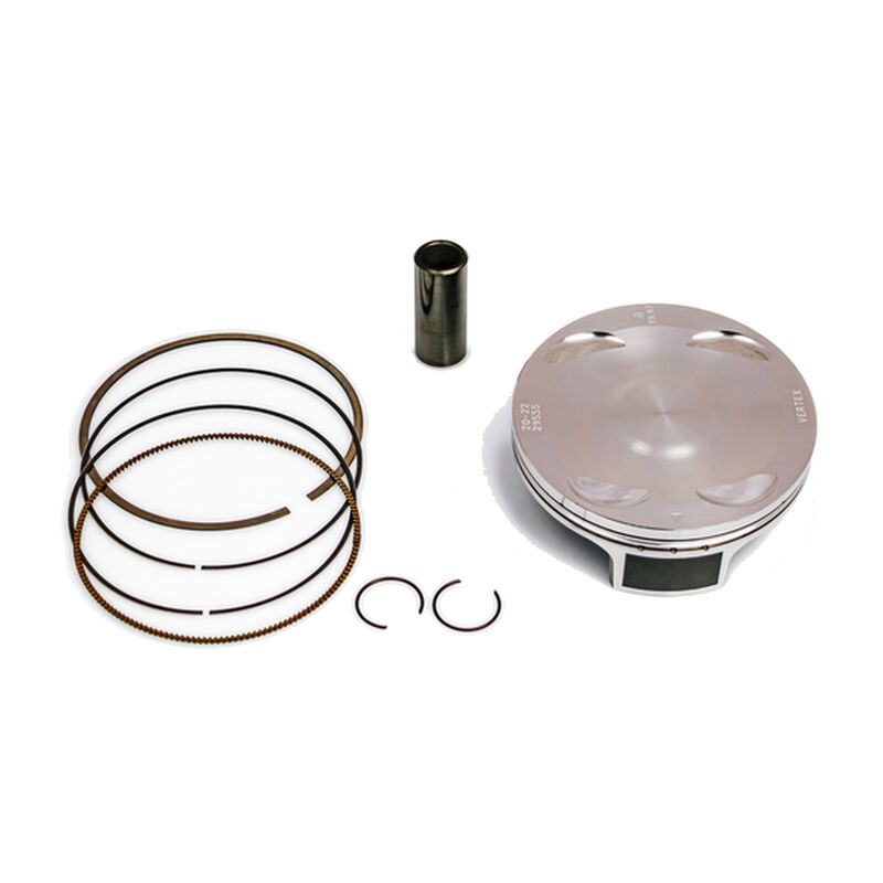 VERTEX KOLBEN KIT, TYPB REPLICA Der italienische Hersteller VERTEX fertigt Kolben für gängige 2T und 4T Motoren, diese werden nach europäischen Qualitätsstandards gefertigt. Die Kolben werden bei einigen Marken auch als Erstausrüster Kolben verwendet. MIT DEM REPLICA KIT LIEFERT VERTEX EINEN SEHR HOCHWERTIGEN KOLBEN IN ORIGINAL FORM. Für hohe Verschleissfestigkeit und Fresssicherheit sorgt die hochwertige Kolbenlegierung. Die Kolben werden alle mit einem speziellem Härte- und Anlasszyklus T-5/T-6 wärmebehandelt. Das Kolbenhemd ist mit einer leicht laufenden High-Tech-Molybdändisulfit-Beschichtung versehen, welche die Reibung zwischen Kolben und Lauffläche besonders während der Einfahrphase vermindert und die Kolbenlebensdauer zu erhöhen. Bei allen Replica Kits sind Kolben, Kolbenringe, Kolbenbolzen und Sicherungsringe im Lieferumfang enthalten. Ersatz Kolbenringe können auch einzeln bestellt werden. Kolben: TypB Kolbendurchmesser: Ø 99.97 mm Weitere Infos zum richtigen Kolbenmass finden Sie in unserem Kolben FAQ [1] Links: —— [1] https://www.backyard-racing.ch/kolben-das-richtige-mass-die-verschiedenen-kolben/kbi-32.html?language=de