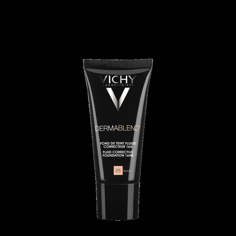 Dermablend Teint-Korrigierendes Make-Up von Vichy ist eine Foundation mit hoher Deckkraft, die der Haut bis zu 24 Stunden Feuchtigkeit spendet. Die Grundierung deckt dank 25 % Pigmentanteile Makel wie kleine Narben, geplatzte Äderchen, Rötungen, Augenringe, Mitesser oder Pickelmale gezielt ab.Das Dermablend Teint-Korrigierende Make-Up wurde von der Stiftung Warentest ausgezeichnet und ist auch für empfindliche Haut geeignet. Die Foundation sorgt bis zu 16 Stunden lang für einen ebenmässigen Teint ohne Maskeneffekt oder Glanz. Nicht komedogen.