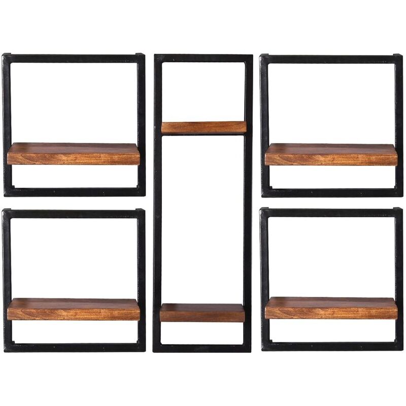 Wandregal-Set – Wandregal Ecuador – Mangoholz – B 105 T 25 H 75 cm – Maße der Einzelregale: 4 x 35x25x35 cm, 1 x 25x25x75 cm – 4 niedrige und 1 hohes Wandregal