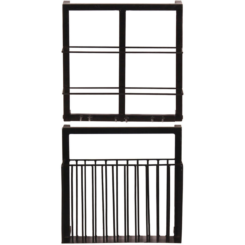 Wandregal-Set – Wandregal Rimon – Metall – B 35 T 15 H 75 cm – 1x horizontales Weinregal für 2 Flaschen 35x15x35 cm, 1x Wandregal mit Korkenfang 35x15x35 cm – 1 Korb, Halterung für 2 Flaschen und 3 Gläser