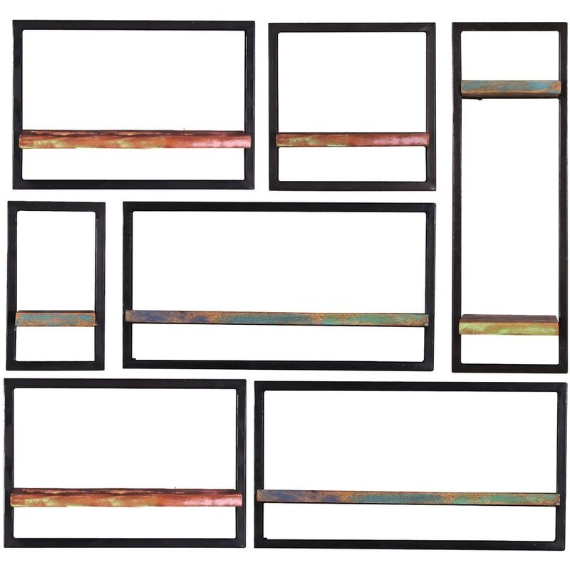 Wandregal-Set – Wandregal South – Altholz – B 120 T 25 H 115 cm – Maße der Einzelregale: 2 x 50x25x35 cm, 2 x 65x25x35 cm, 1 x 35x25x35 cm, 1 x 20x25x35 cm, 1 x 25x25x75 cm – 6 niedrige Wandregale in 3 Breiten und 1 hohes Wandregal