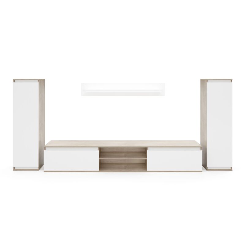 Hol dir ein Wohnwand-Set, das mit einzigartigem Design überzeugt und deinen Wohnraum aufwertet! So musst du keine Zeit und Nerven vergeuden, um passende Möbel für dein Zuhause zu finden. Nutze die Regale der Schränke für Bücher, DVDs und anderen Kleinkram. Das TV Möbel bietet genug Platz für Fernseher, TV Box und Spielekonsole. Richte dein Zuhause modern und praktisch ein!