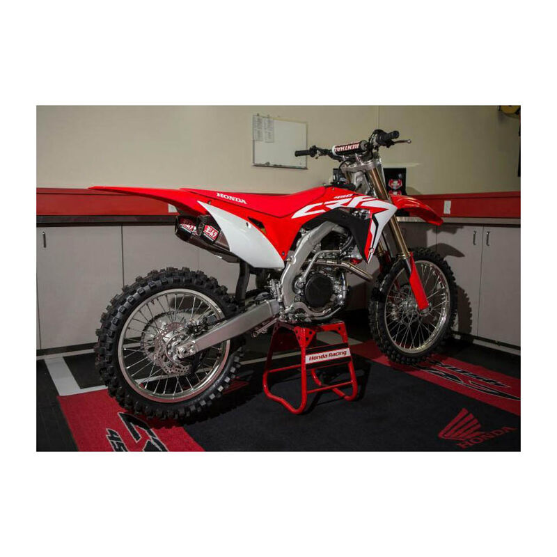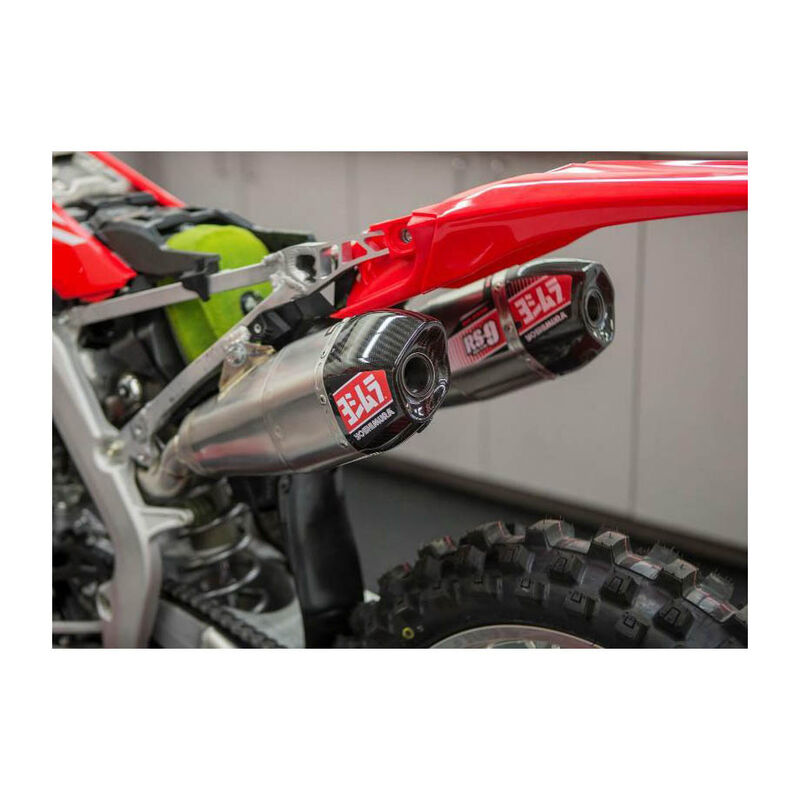 Die Komplettanlagen RS-9 von Yoshimura USA bieten neben ihrer ansprechenden Optik moderne Spitzentechnologie in Sachen Auspuffanlagen. Ausführung mit 2 Schalldämpfern, exklusiv entwickelt für die Honda CR-F * 2 Schalldämpfer im Parallelogramm-Design * erhöht und verteilt das Abgasvolumen * verhindert die negativen Effekte der Abgasführung, insbesondere beim Zurückschalten * optimiert die Gewichtsverteilung: besseres Handling für den Fahrer geringere Geräuschentwicklung * Titan-Krümmer * Schalldämpfer und Carbon-Endkappe Header,Krümmer,Auspuffrohr,4TaktAuspuff,Exhaust,Auspuff,muffler,exhaust pipe,échappement,scarico,collettore,collecteur,manifold Passend auf: HONDA CRF450R CRF450RX