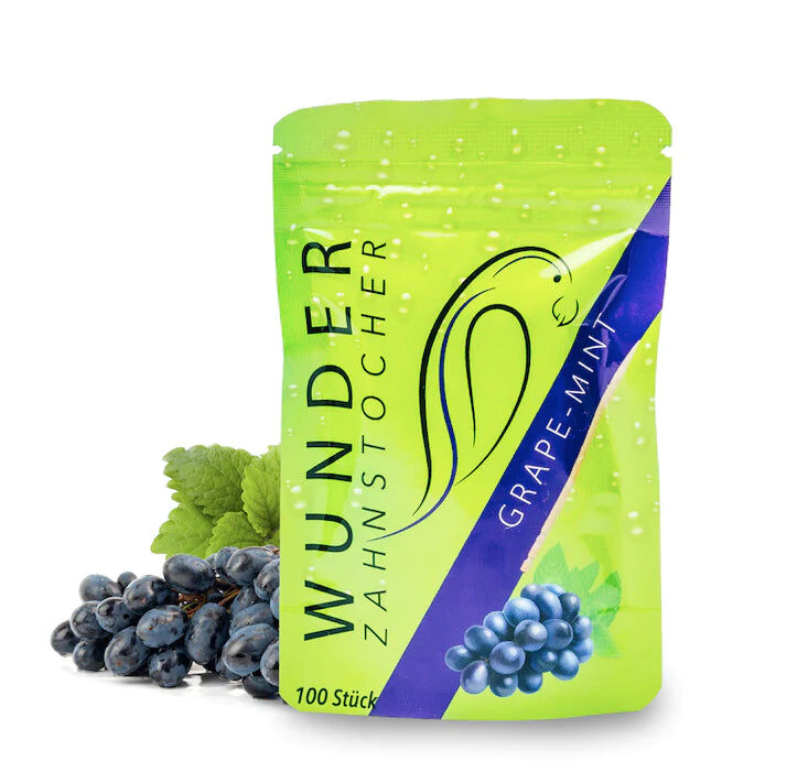 Refill für die Wunder Zahnstocher Metallbox. Zahnstocher mit Traube Minze Geschmack. Frischer Atem garantiert! Verpackungsinhalt: 100 Zahnstocher. 100% Handmade in Germany! Mit jedem Kauf spendest Du automatisch an unser Wunder-Bienenvolk und leistest dadurch einen wertvollen Beitrag für den Erhalt unseres gesamten Ökosystems! Bestandteile: Birkenzahnstocher, Nat. Lebensmittelaroma, Glycerin, Süßungsmittel.Die aromatisierten Zahnstocher von Wunder bieten Dir in jeder Situation einen einzigartigen Frischekick und einen natürlichen Geschmack im Mund. Wunder Zahnstocher hydratisieren den Mund, Symptome von Xerostomie (trockener Mund) werden gelindert! Zudem bieten dir die Zahnstocher bis zu 20 Minuten Geschmack im Mund! Stress, Angewohnheit, Langeweile? Unsere Zahnstocher zum Kauen oder Reinigen der Zahnzwischenräume befriedigen deinen inneren Drang. Zudem helfen Dir die Zahnstocher unerwünschte Gewohnheiten wie Nägel kauen, Snacks und das Rauchen loszuwerden! Lust auf frische Produkte? Du möchtest ein junges Start-Up unterstützen? Bei uns bist du genau richtig, wir sind nämlich ein in 2018 gegründetes Familienunternehmen aus Reutlingen.