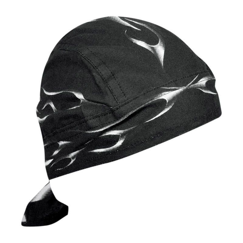 ZANheadgear® Kopftuch FLYDANNA® * Aus 100% Baumwolle * Geformt als Kopftuch aus sechs Teilen * Stoffstreifen hinten, um das Tuch leicht auf den Kopf zu schieben * Knoten im Nacken * Hält den Fahrer im Sommer kühl und im Winter warm * Einheitsgröße FLYDANNA TANK FLAME BLK bandana,kopftuch,headscarf,dreieck tuch, dreiecktuch,Headwrap,