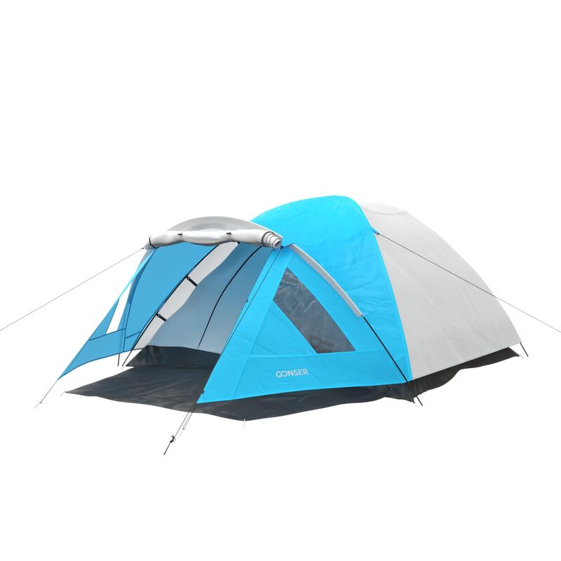 Ab in die Wildnis! Dieses Tunnelzelt macht deine Familienferien zu einem echten Erlebnis. Das robuste und witterungsbeständige Zelt kann mit wenigen Handgriffen auf- und abgebaut werden. Es bietet ausreichend Platz für drei bis vier Personen. Die Zeltplane ist aus wasserabweisendem Polyester gefertigt und wird durch stabile Zeltstangen aus Fiberglas gehalten. Das clevere Design des Innenzeltes hält auch lästige Insekten ab. Geniesse die Auszeit mit deiner Familie in diesem Zelt ADAN in sommerlichem Blau!